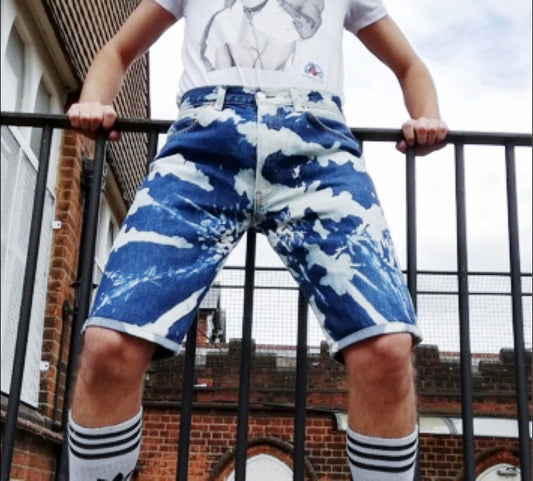 Straight fit bleached shorts blue Levi's with zips (new)